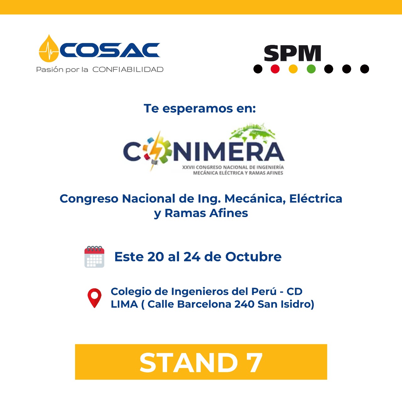 The 27th National Congress of Mechanical, Electrical, and Related Engineering (CONIMERA) will be held from October 20 to 24, 2025, at the Convention Center of the Departmental Council of Lima (CIP), San Isidro.