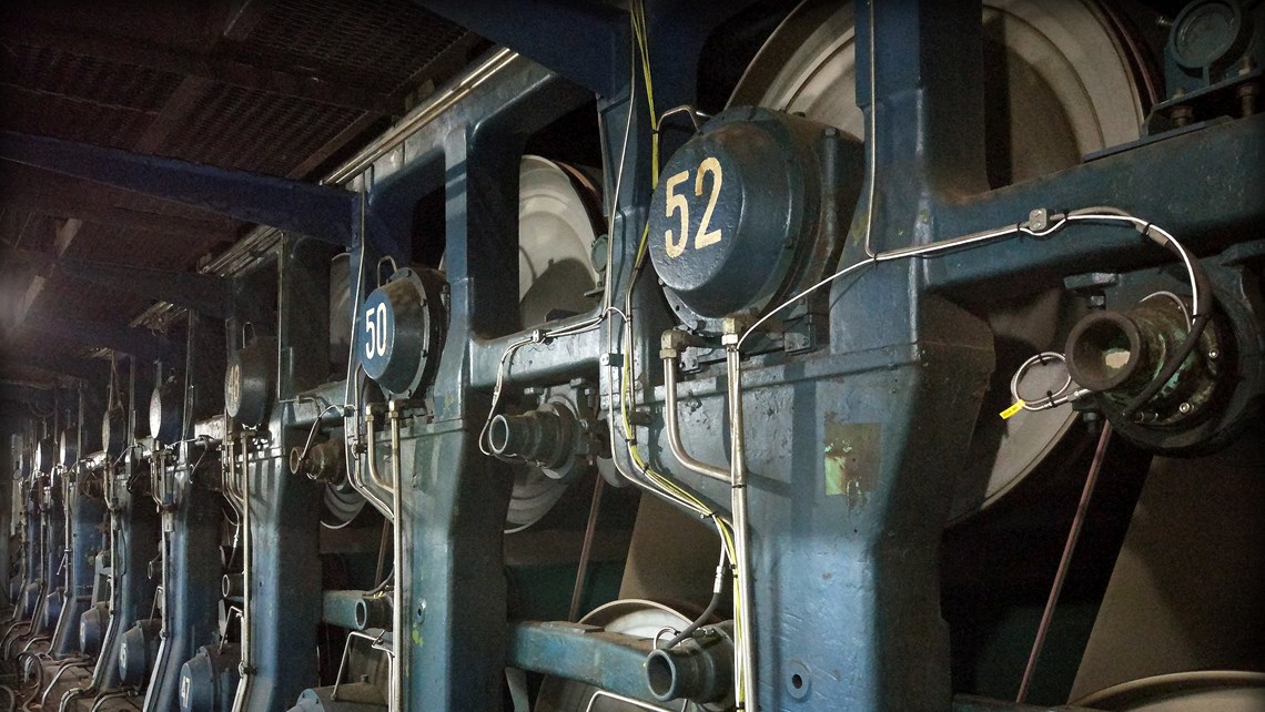 In conjunction with the installation of the Intellinova system, existing vibration sensors and cabling, used for remote measuring points with their handheld instrument, were integrated into the online monitoring units. The online system was also expanded to include more measuring points on the board machine K25, where one hundred and forty DuoTech accelerometers were installed and connected to the system. In total, the system covers over two hundred measuring points on the felt rollers, gears, suction rolls and press roll bearings.